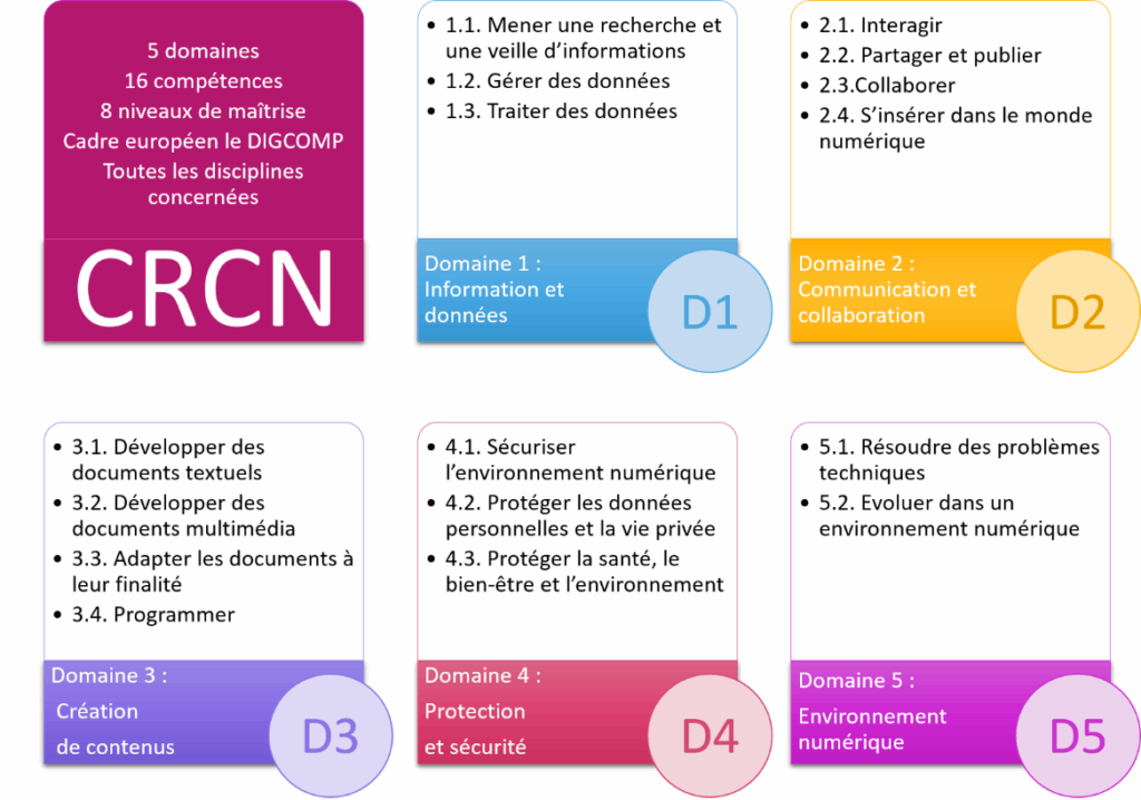 Le CRCN constitue le cadre national qui structure l’enseignement et l’évaluation des compétences numériques des élèves.